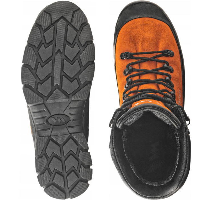 - Cholewka: szlifowana skóra bydlęca welurowa o grubości 2,0–2,2 mm