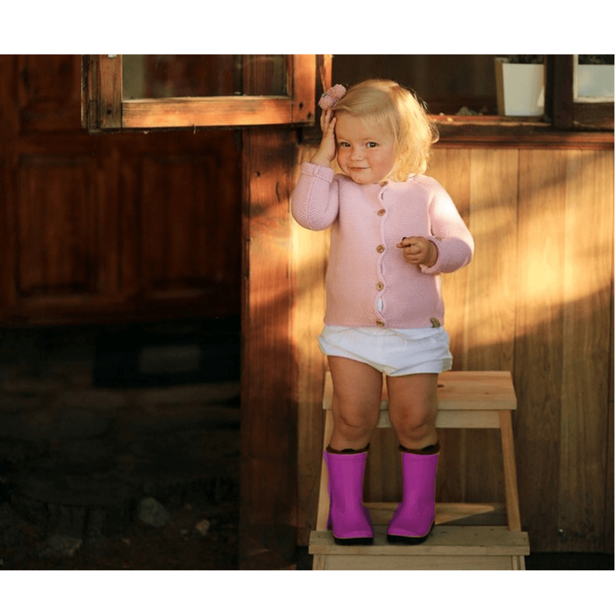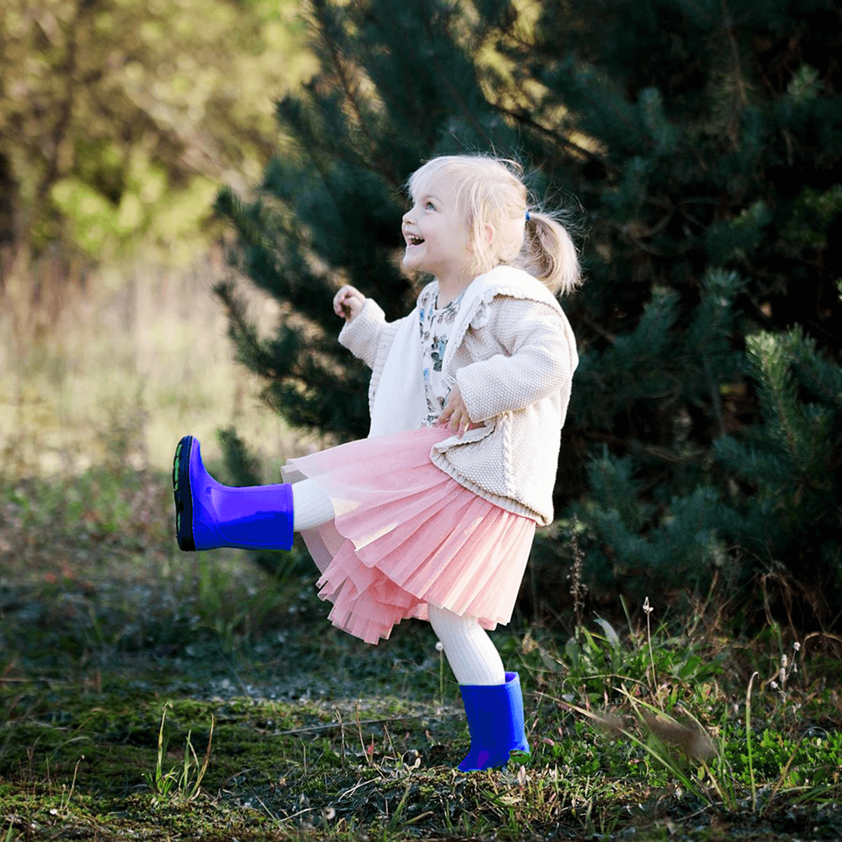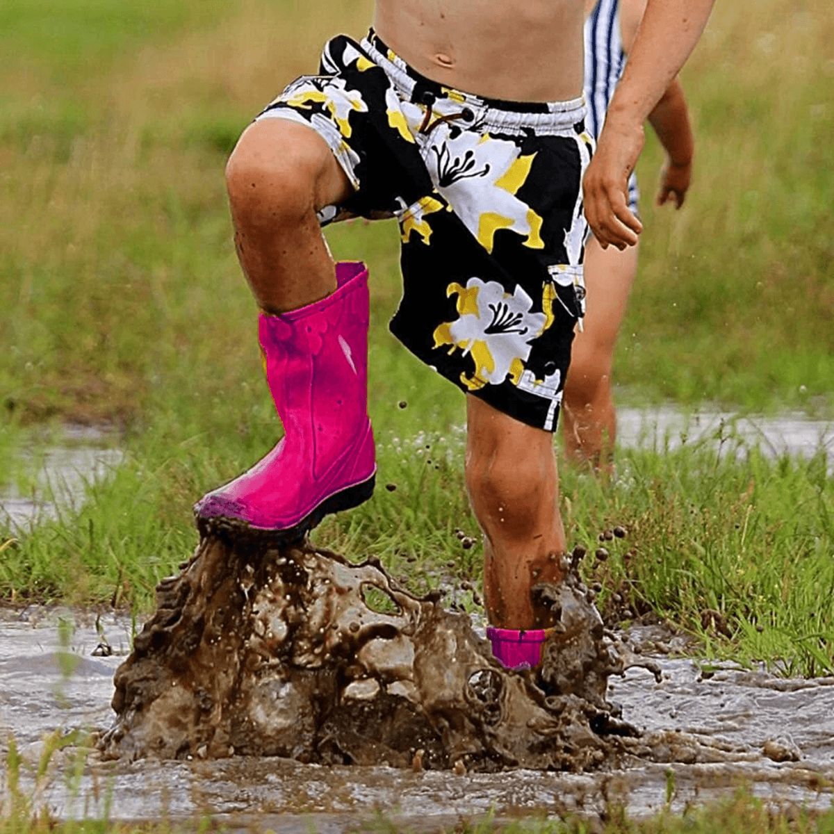 Gummistiefel für Kinder. Die kleinen Bürger können nicht nur unbesorgt in Pfützen spielen, sondern auch mit trockenen Füßen den Kindergarten oder die Schule erreichen, den Wald erkunden oder den Regen bei Oma genießen.