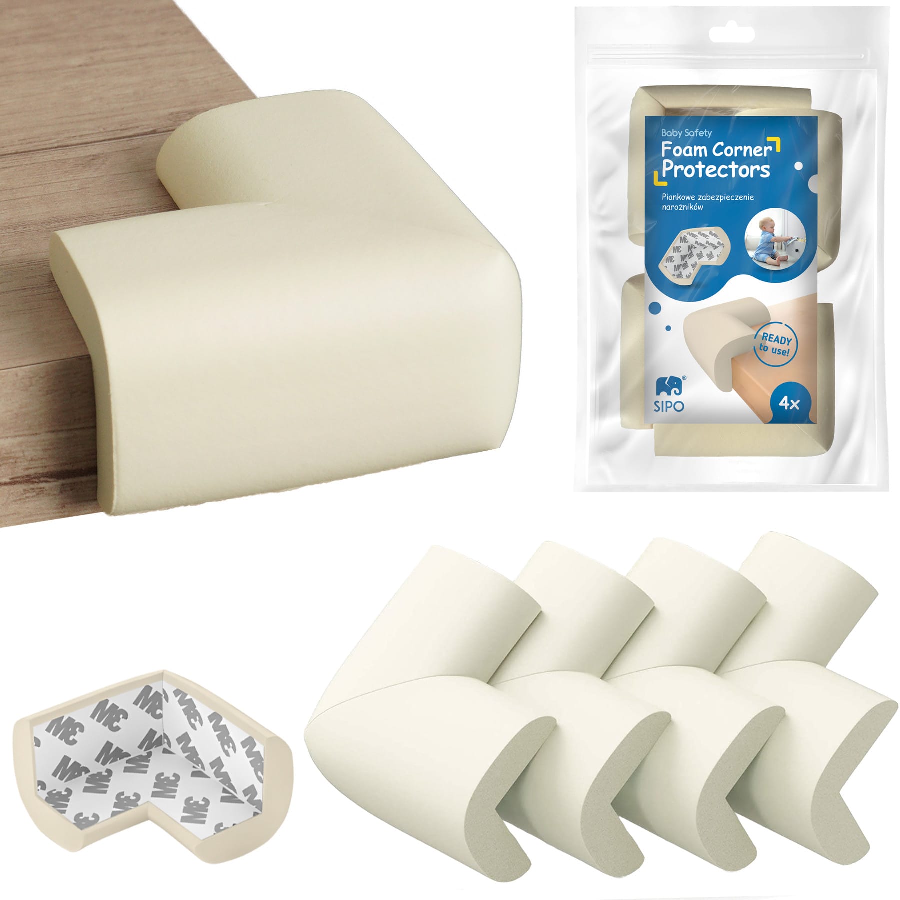 SIPO, PIANKOWE ZABEZPIECZENIA NAROŻNIKÓW MEBLI – ZESTAW 4 SZTUK, KREMOWE